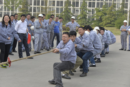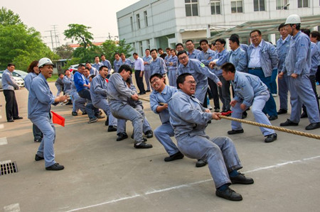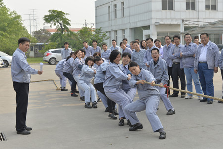 4月30日下午,公司工會舉辦的第八屆慶“五一”拔河比賽在辦公樓前舉行。
